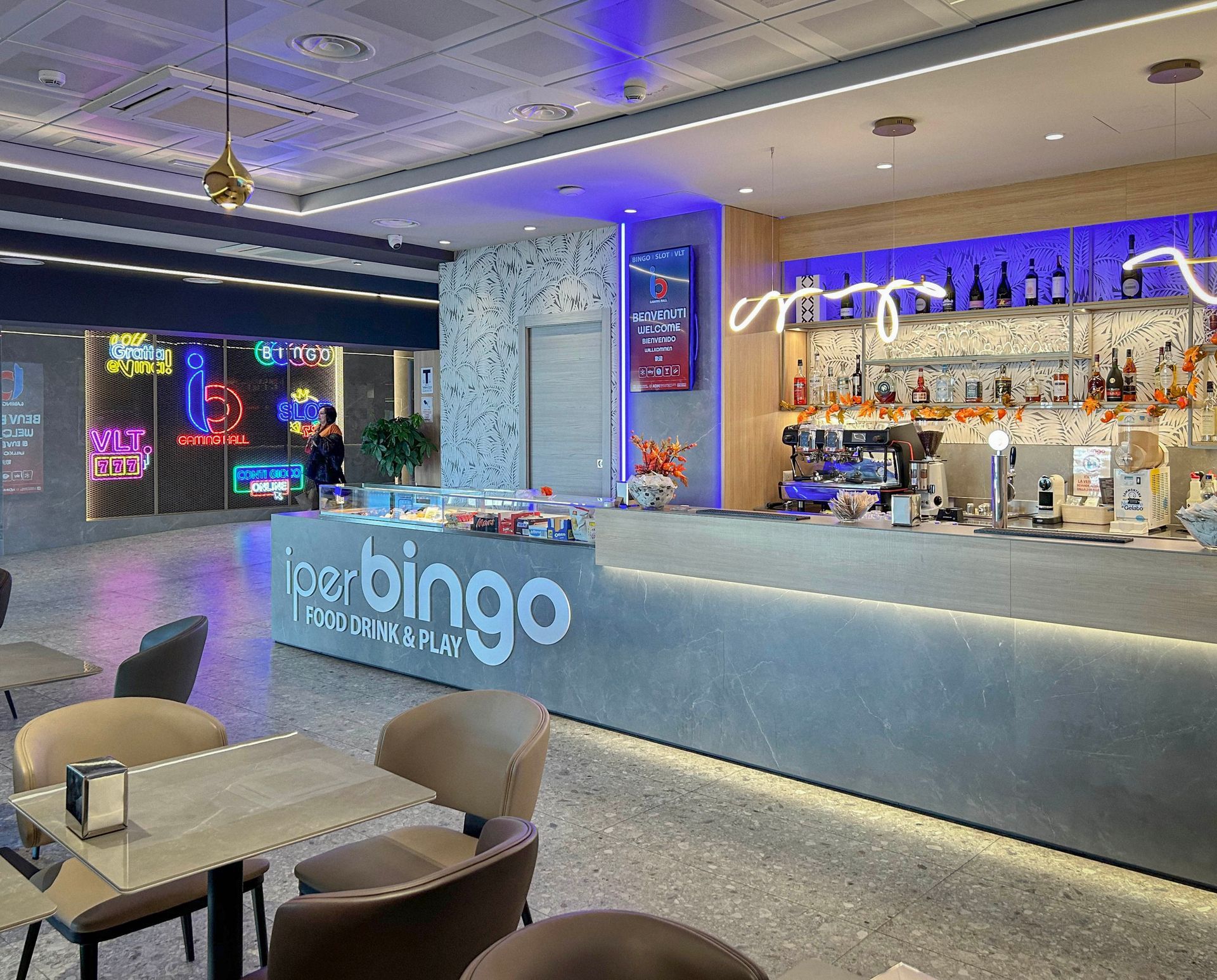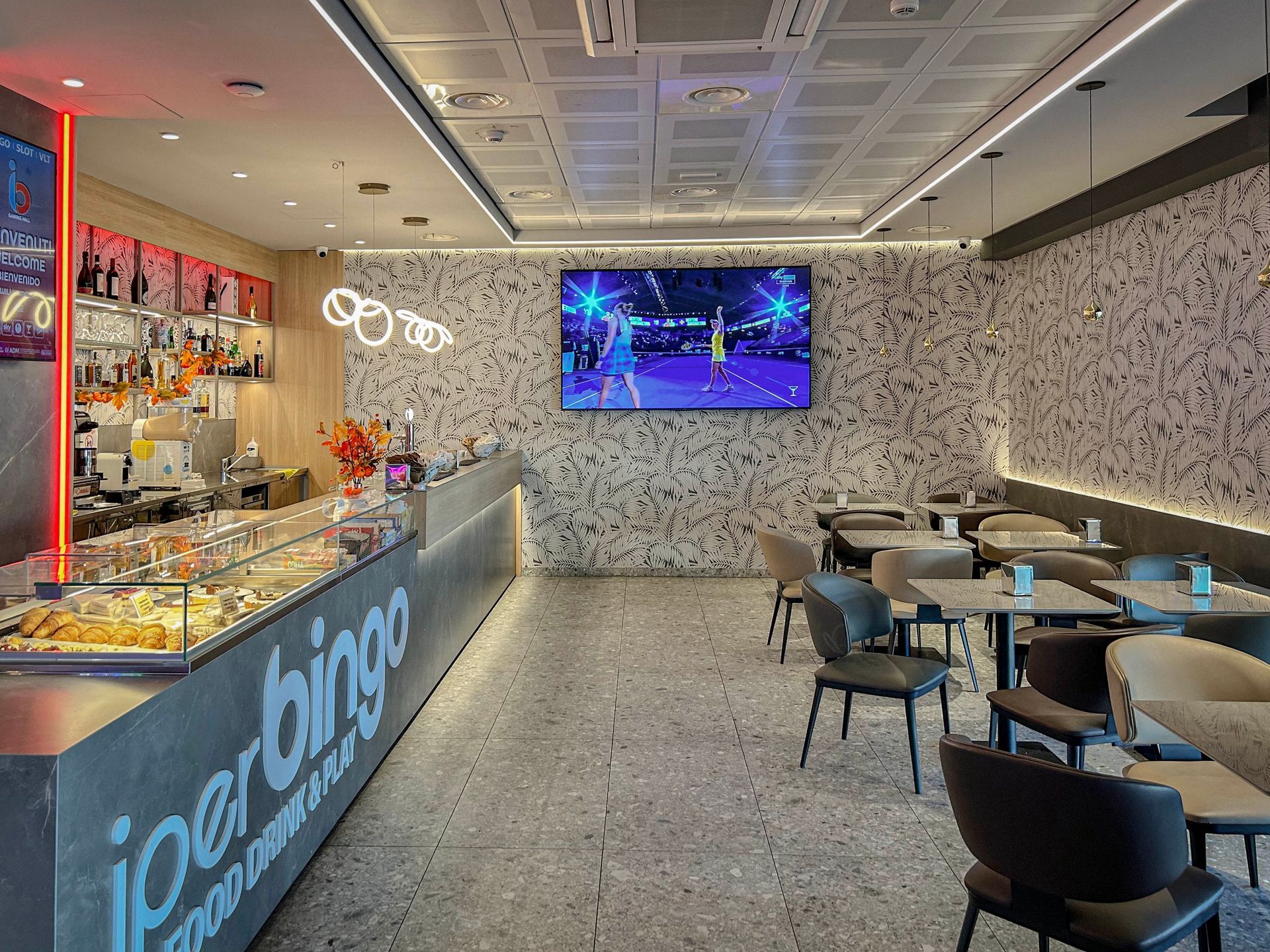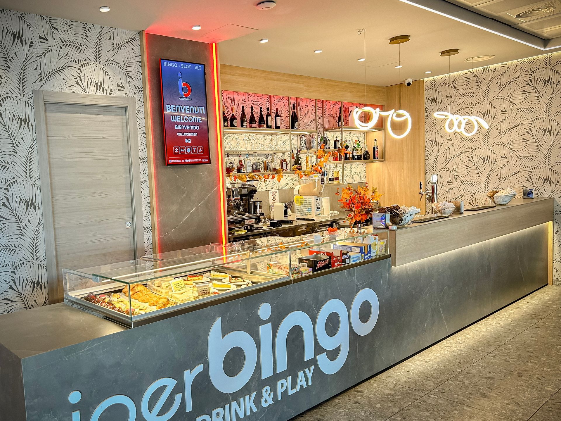 Disponiamo di un ampio spazio gratuito proprio di fronte all'ingresso, rendendo ogni sosta semplice e immediata. Il locale, recentemente rinnovato, offre un ambiente moderno, accogliente e completamente climatizzato, progettato per metterti al centro del nostro mondo. Per gli appassionati, siamo punto Sky ufficiale: trasmettiamo in diretta le migliori partite e tutti i grandi eventi sportivi in un’atmosfera conviviale.